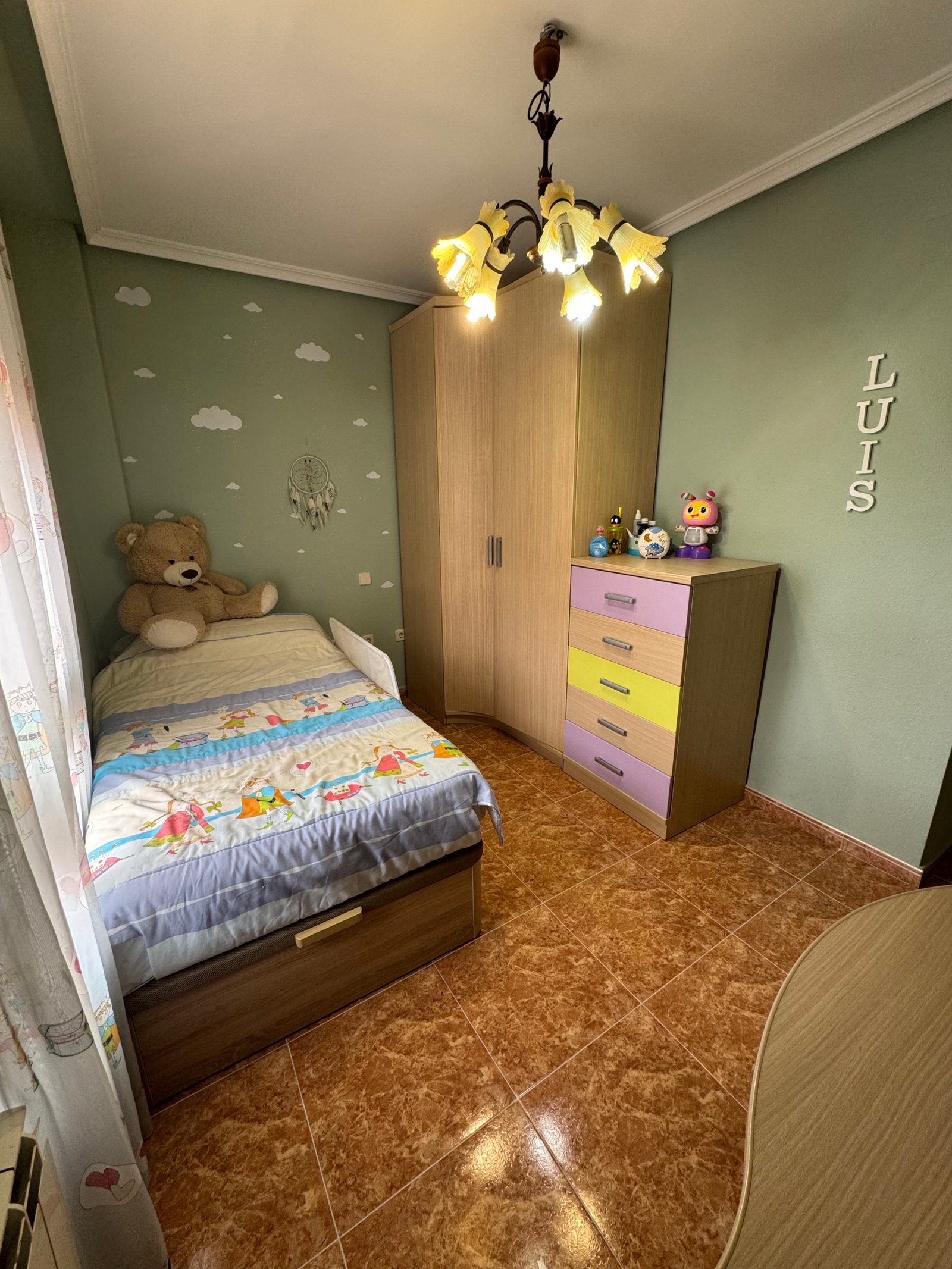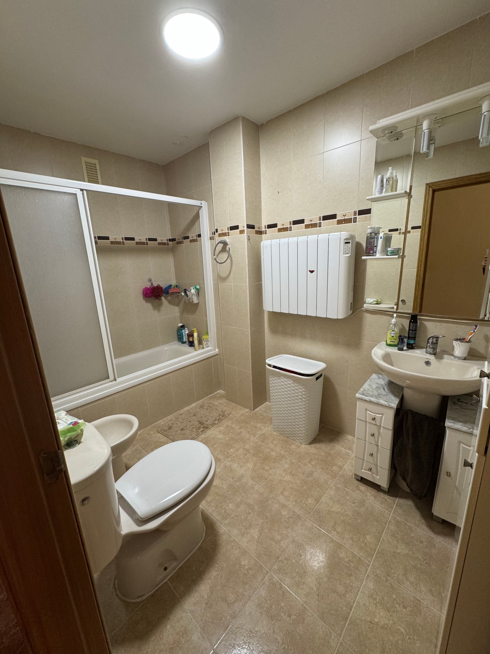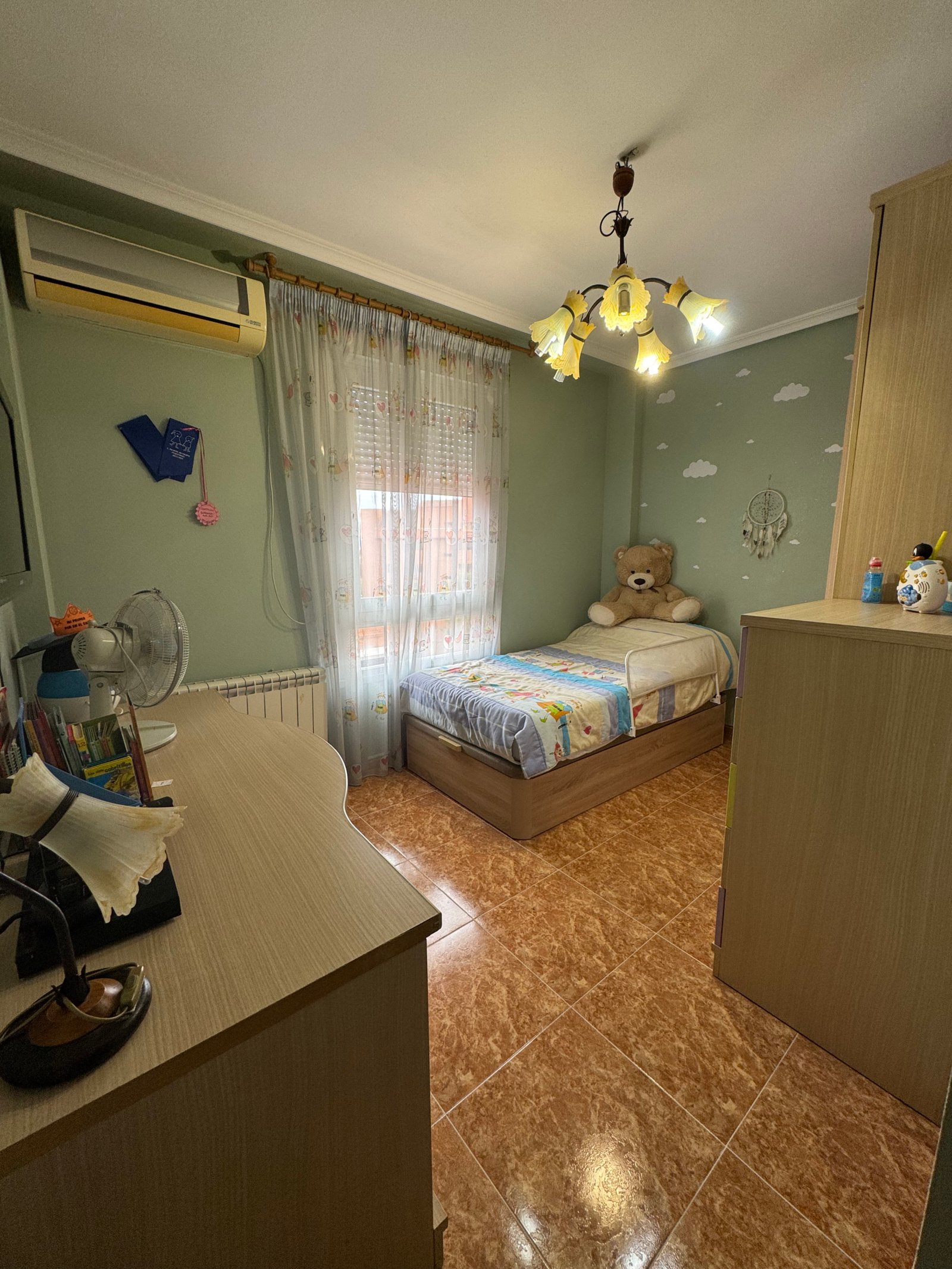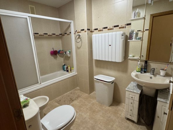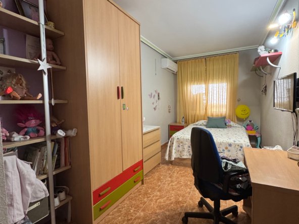 Cuenta con tres dormitorios, todos ellos luminosos y bien proporcionados, y dos baños completos en perfecto estado, que aportan comodidad y privacidad a cada miembro de la familia.