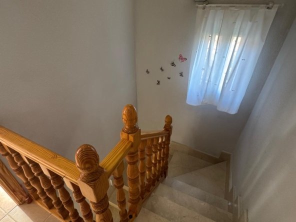 En el interior, cada detalle ha sido cuidado: • Planta baja: Gran salón de 27 m², cocina de 13 m², habitación en planta, despensa y aseo. • Planta alta: Dormitorio principal con armario empotrado y baño en suite con hidromasaje, una habitación de 13 m² con armario empotrado, otra de 9,5 m² también con armario, y un baño completo.
